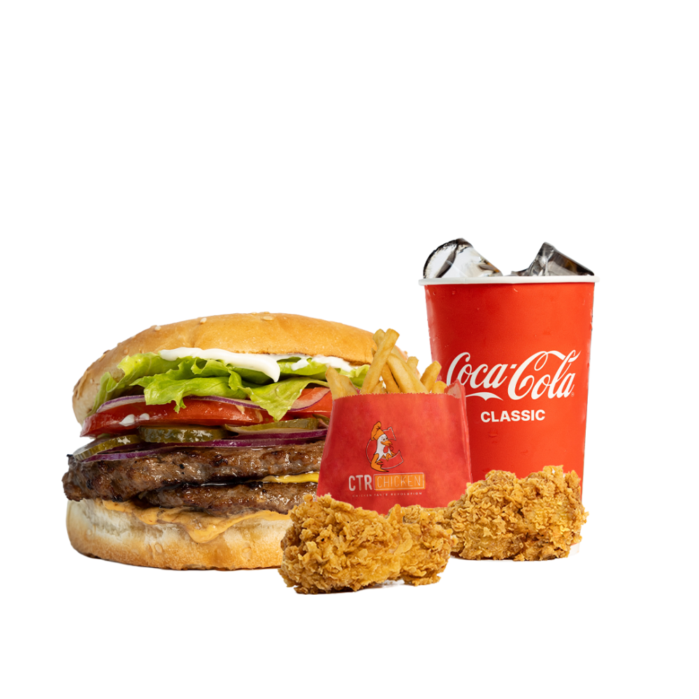 2 дана ащы қанат немесе 2 тендерс, 1 шағын фри картобы, coca-cola 0.4