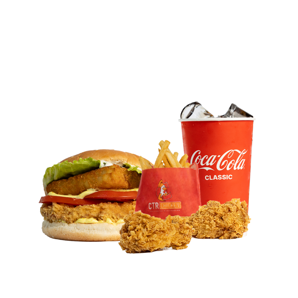 2 дана ащы қанат немесе 2 тендерс, 1 шағын фри картобы, coca-cola 0.4