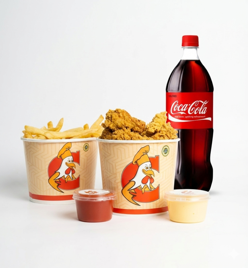 9 қанат, 9 тендерс, 2 ерекше соус, 1 баскет фри, 1 л кола