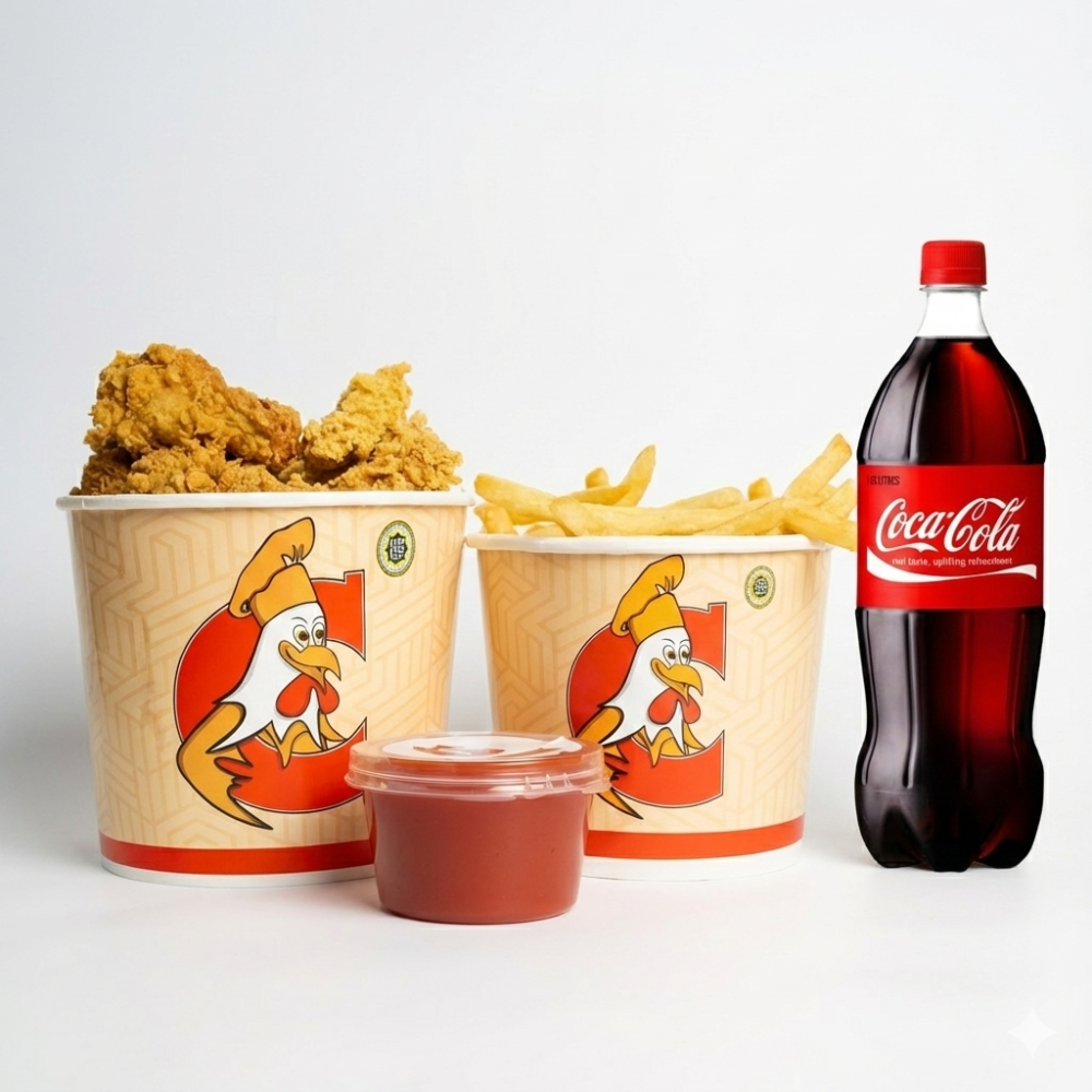9 қанат, 1 ерекше соус, 1 баскет фри, 1 л кола