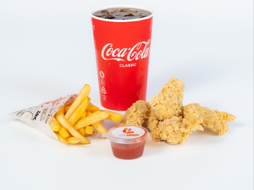 5 дана ащы қанат, шағын фри картобы, cola 0,4, кетчуп
