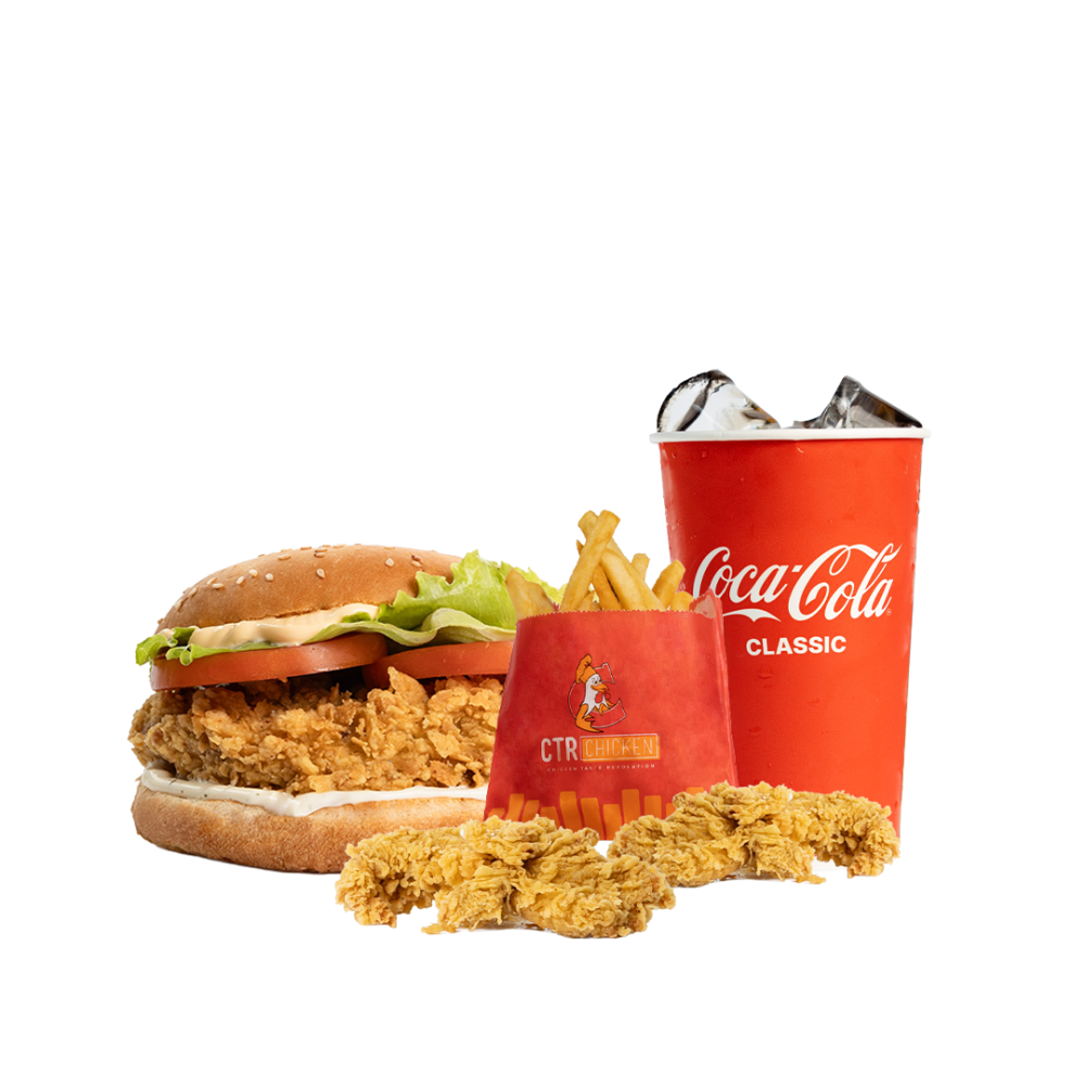 2 дана ащы қанат немесе 2 тендерс, 1 шағын фри картобы, coca-cola 0.4