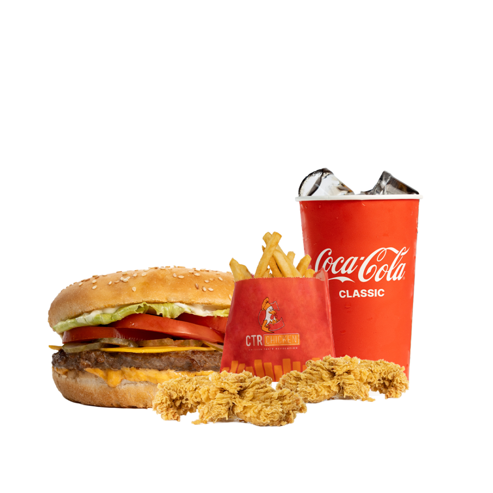 2 дана ащы қанат немесе 2 тендерс, 1 шағын фри картобы, coca-cola 0.4
