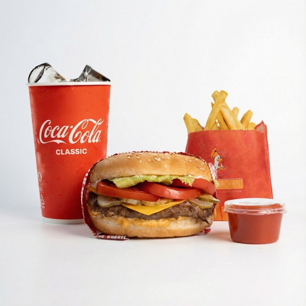 Чизбургер, шағын фри картобы, cola 0,4, кетчуп