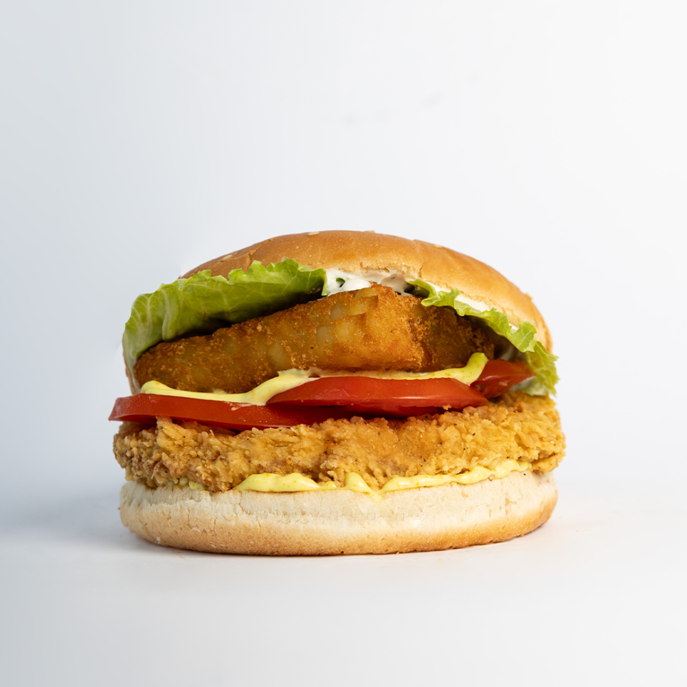 котлет туық етінен, Ірімшік соусы, айсберг, хашбраун, қызанақ, ранч соусы