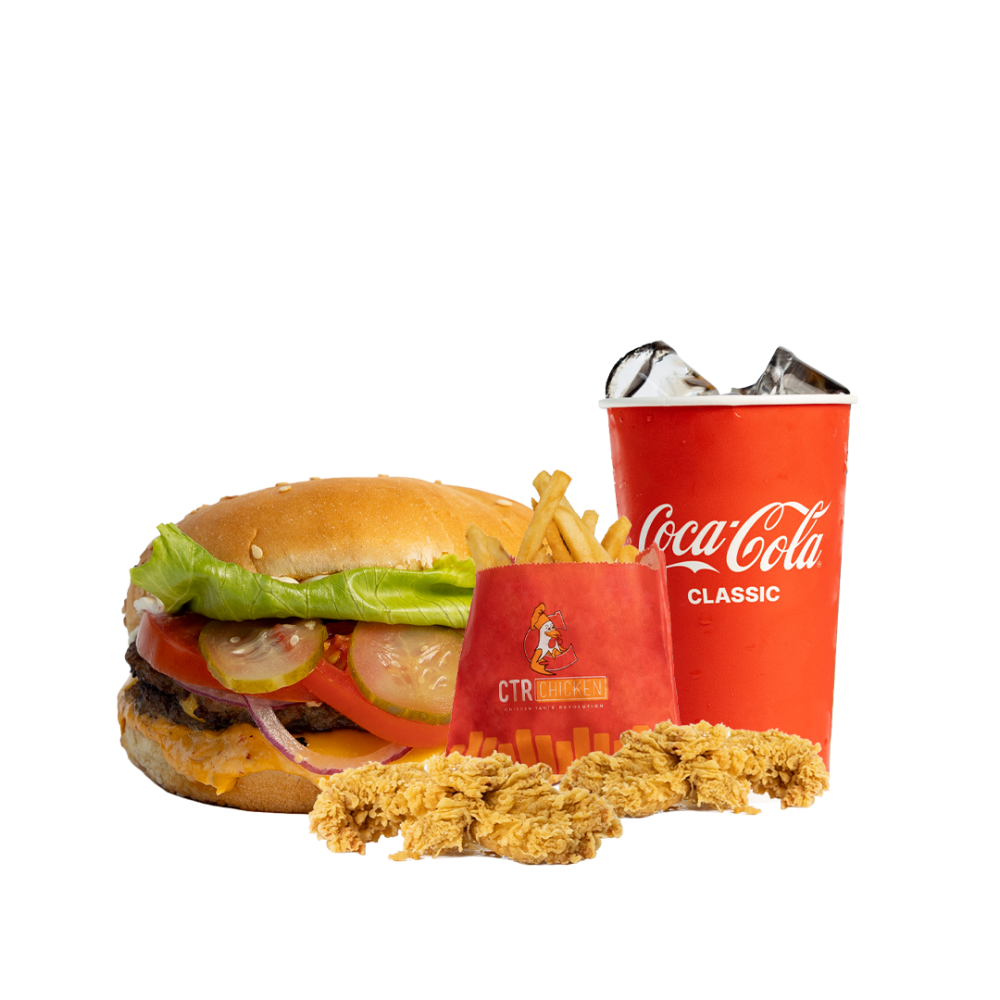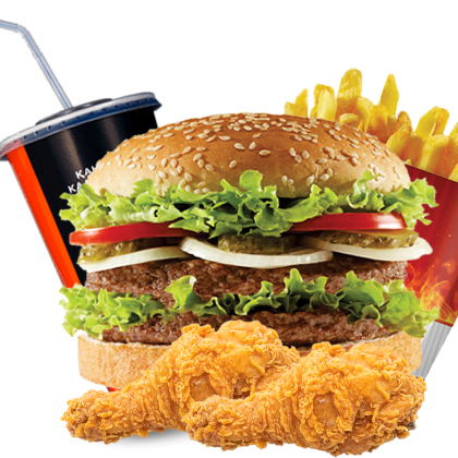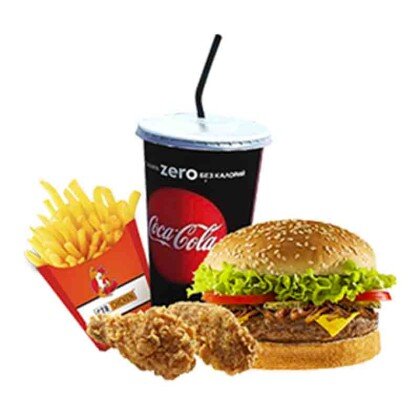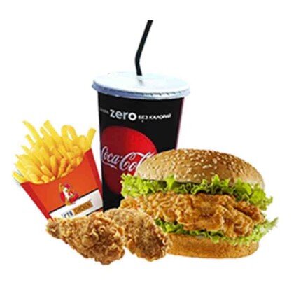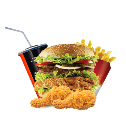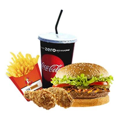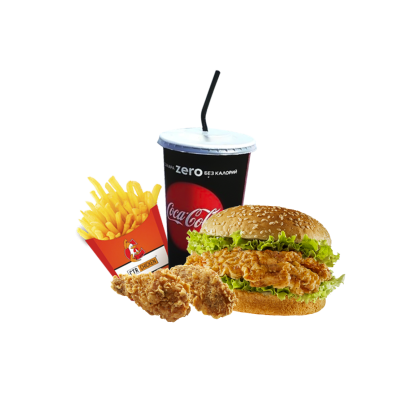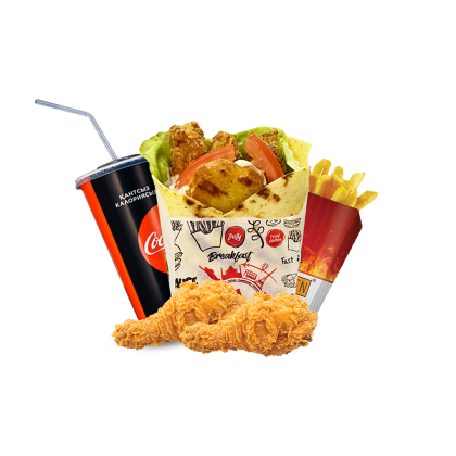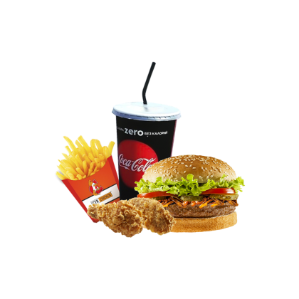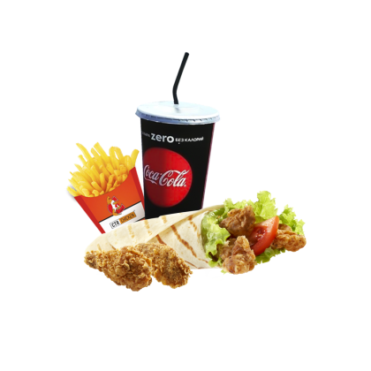 2 дана ащы қанат немесе 2 тендерс, 1 шағын фри картобы, coca-cola 0.4