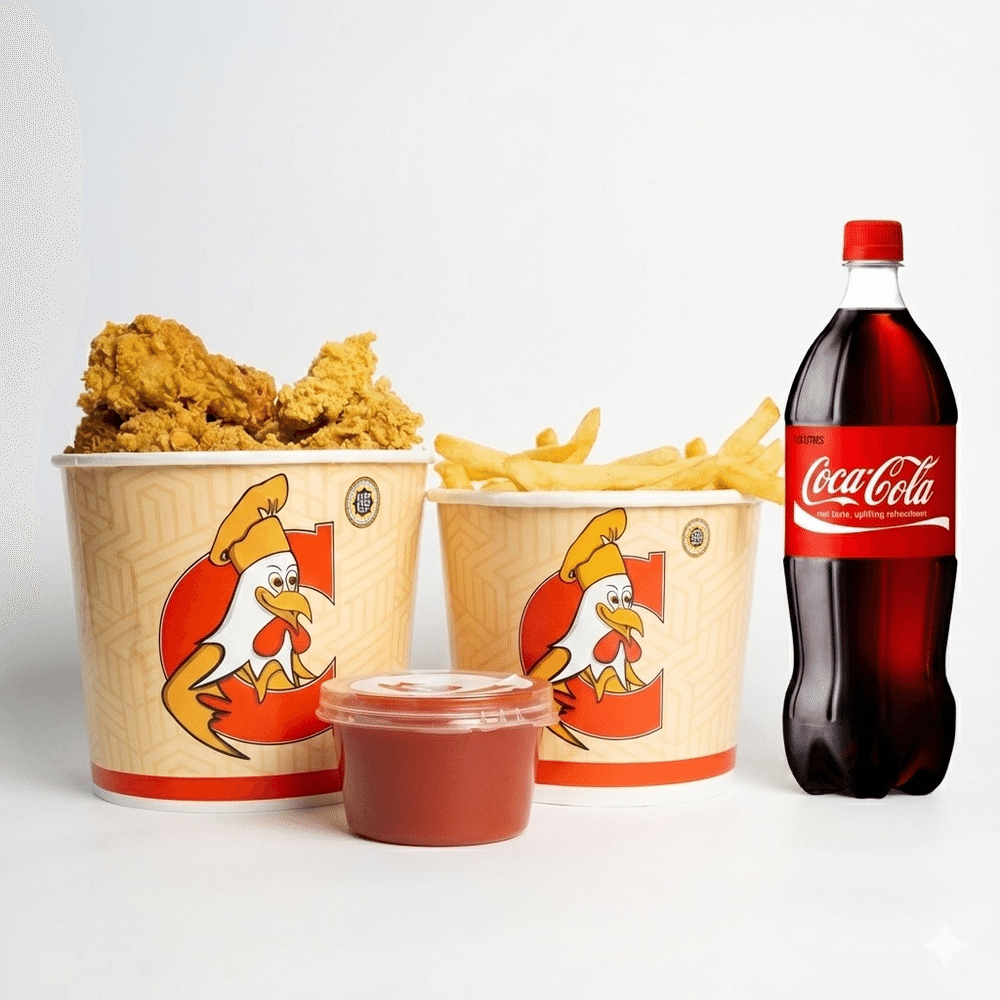 4 қанат, 4 тендерс, 4 карри байтс, 1 ерекше соус, 1 баскет фри, 1 л кола